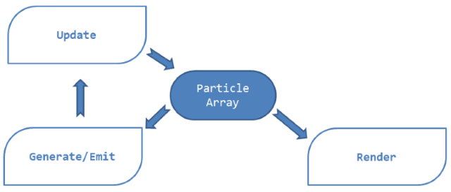 - a renderer - finally we need a way to push all the data to the screen and render the whole system. Rendering particle system is an interesting topic on its own because there are lots of possible solutions and techniques.