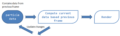 As name suggests we will store current state of particles. We will use previous state(s) to compute the current one. One of the most popular way to do this is called Euler method: