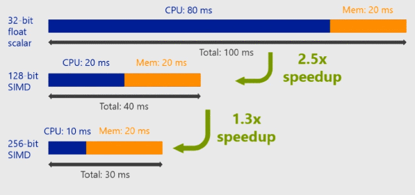 - Computation and instruction execution is 2x faster, but we need to wait for memory