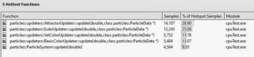 It’s time to start improving the particle code and push more pixels to the screen! So far, the system is capable to animate and do some basic rendering with OpenGL. I’ve shown you even some nice pictures and movies… but how many particles can it hold? What is the performance? Is it that bad? What are the hot spots and bottlenecks? We need to figure that out in the first place!