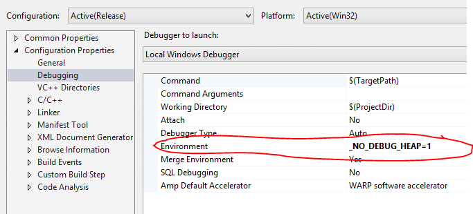 Use “_NO_DEBUG_HEAP” to increase performance of your debugging sessions!.