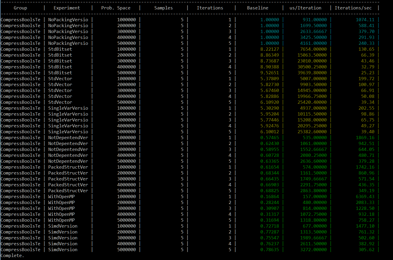 Code on github: fenbf/celeroTest/celeroCompressBools.cpp