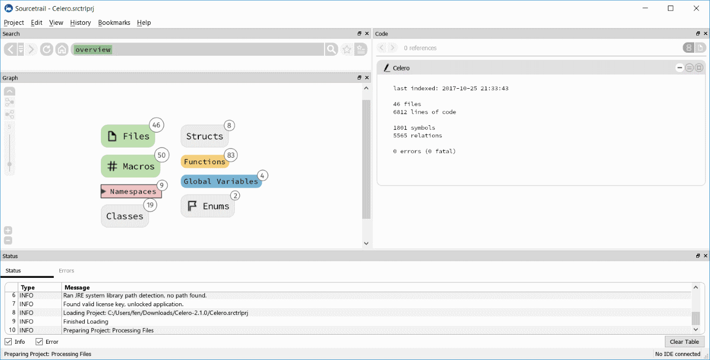 I wanted to go through the whole process of the setup and launching the tool. On Sourcetrail site there are example projects if you want just a brief look: sourcetrail/downloads - like clang source code. And in the tool installation image there some tutorials included as well.