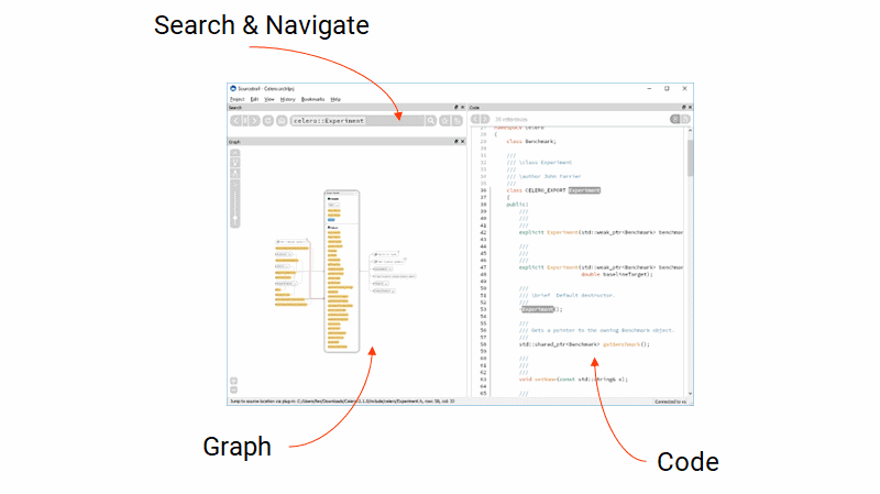 Briefly, the tool was created out of frustration from working with large code bases (when Eberhard was working as an intern at Google). Reading only text is not the most efficient way of understanding a new code, so after a couple of experiments, the team started implementation of the project.